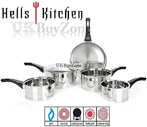 Amazon Com Mts Hell S Kitchen 5 Piece Stainless Steel Non Stick Cookware Saucepan Pan Pot Set Home Kitchen